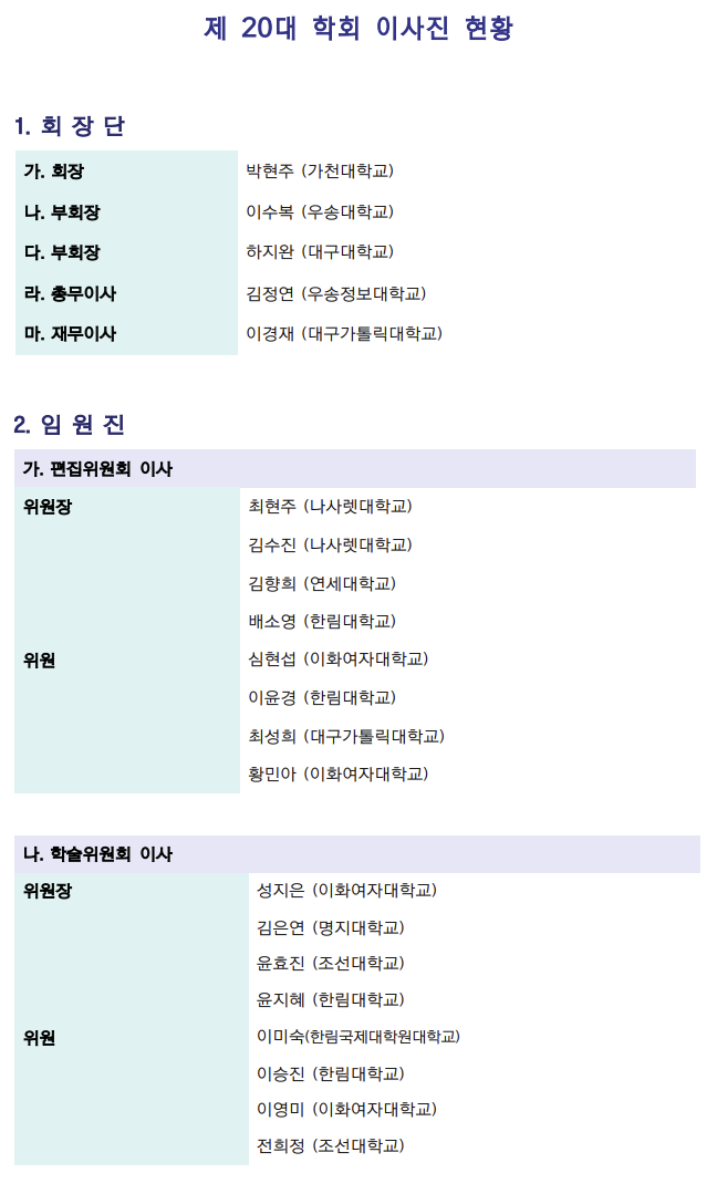 > 학회소개 > 역대 이사 및 감사